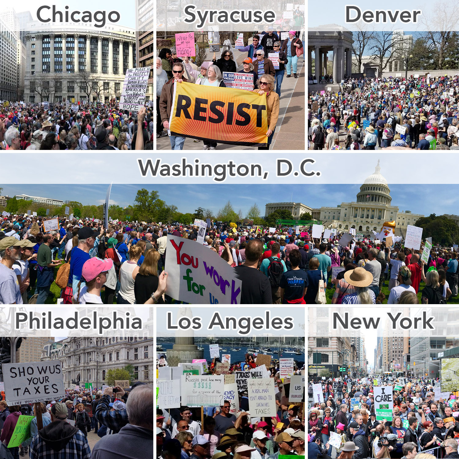 On April 15, 2017, more than 125,000 people took to the streets in Washington, D.C. and more than 200 communities across the country to demand transparency from Trump.