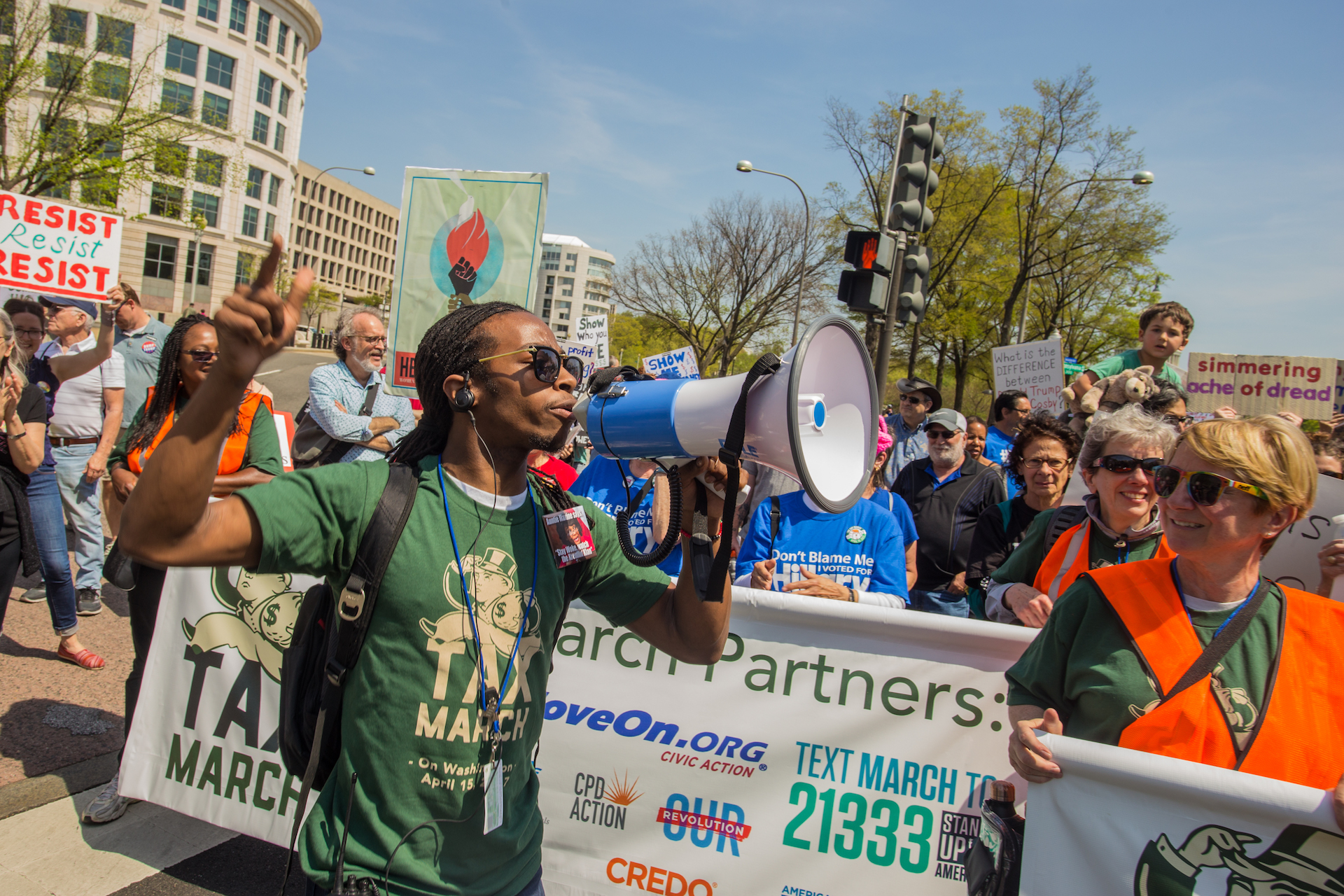 In D.C., leaders like Representative Maxine Waters, Senator Ron Wyden, and Sister Simone Campbell called on Trump to release his tax returns, and #TaxMarch trended nationally all day — resulting in 1.7 billion impressions.